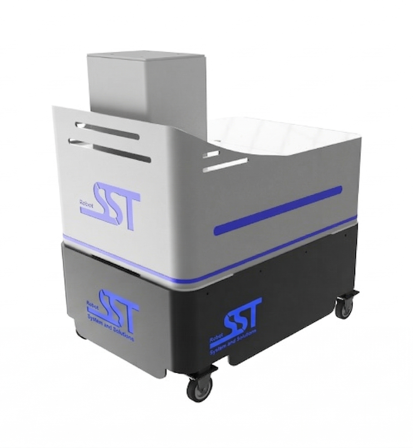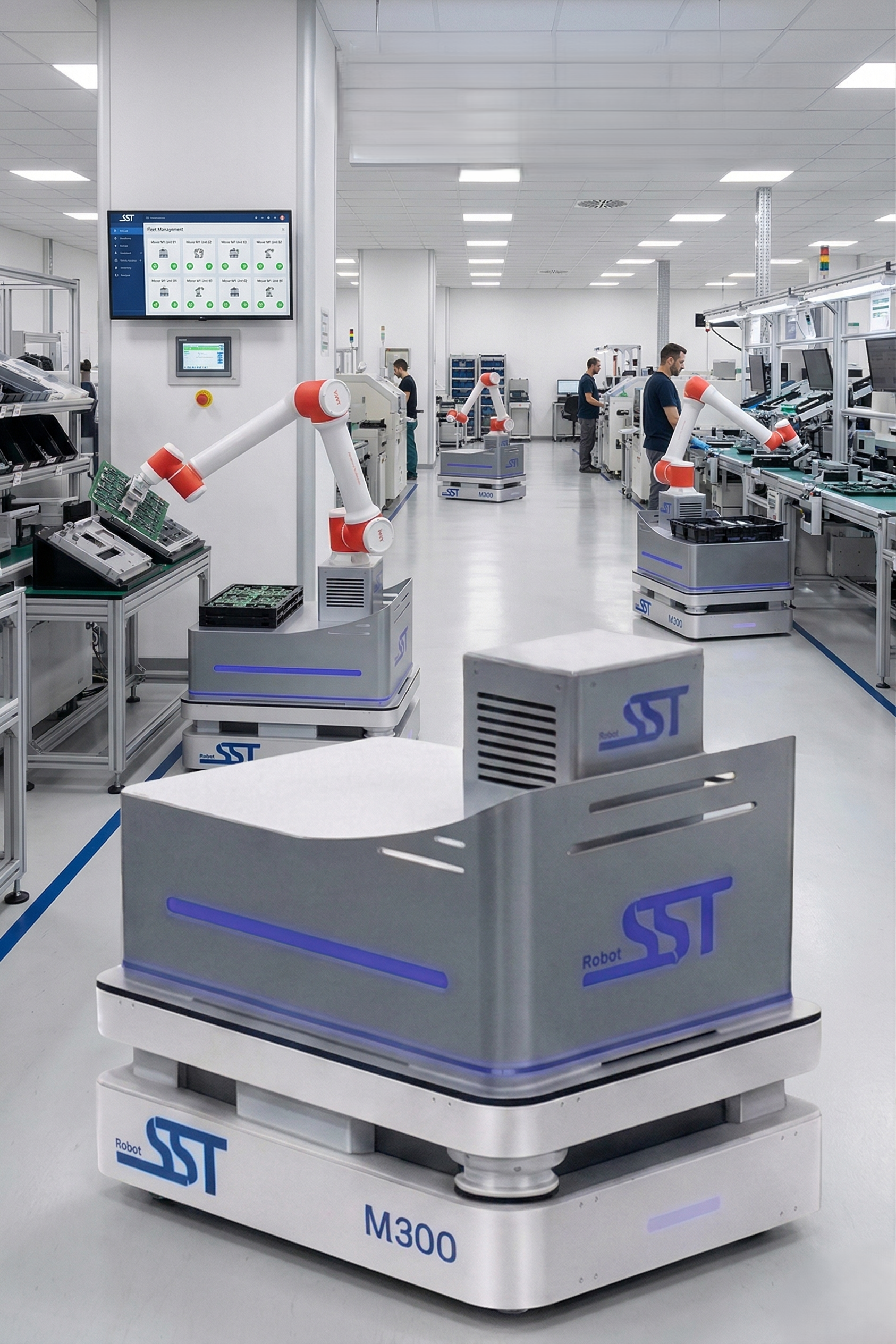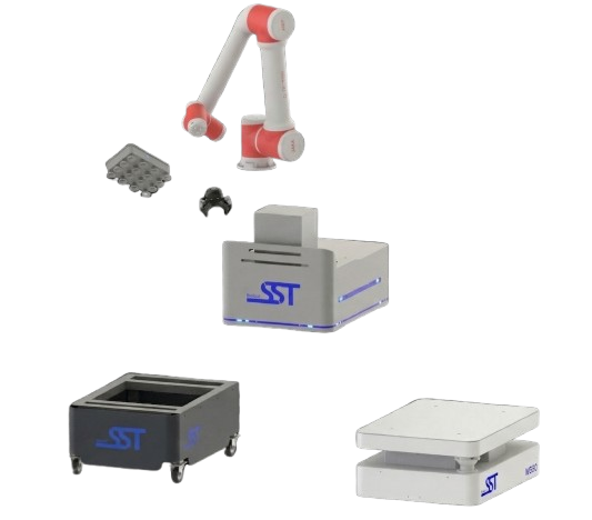 It is equipped with onboard electronics that allow you to connect and supply, through dedicated safe wired lines, any desired accessories, such as industrial PCs, switches, routers, and tool changers.
